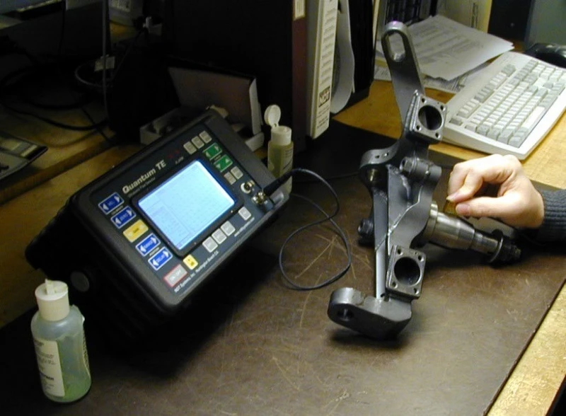 Modern UFDs with probes & calibration blocks; individual flaw detector with defect samples